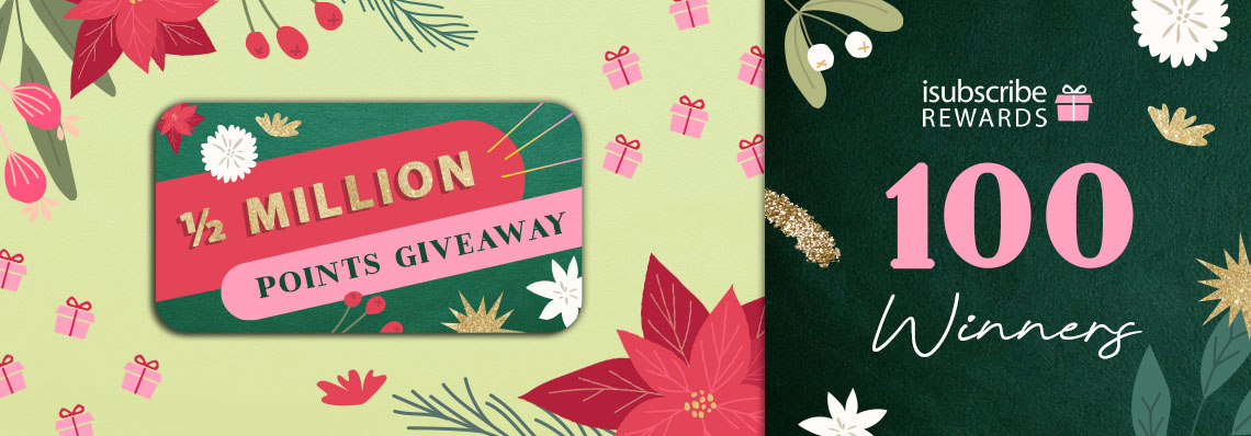 isubscribe Rewards members automatically get one entry in the 1/2 Million isubscribe Rewards Points Giveaway for each title ordered.